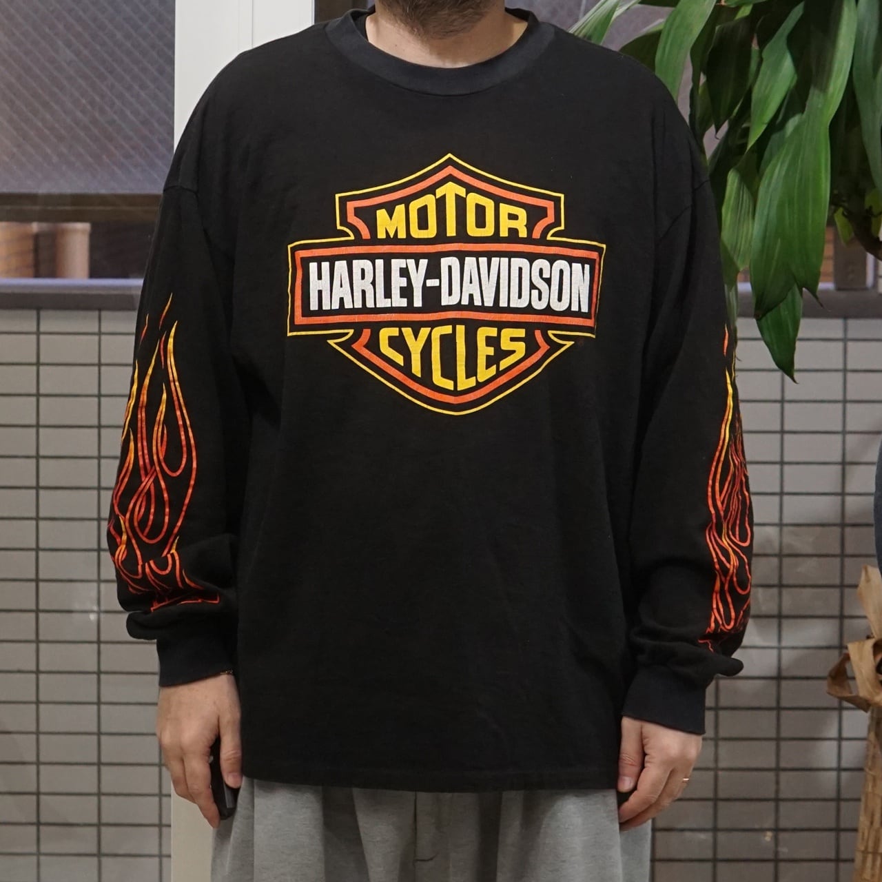 90's Vintage Harley Shirt Bar&Shield Fire Flame L/S【XXL】