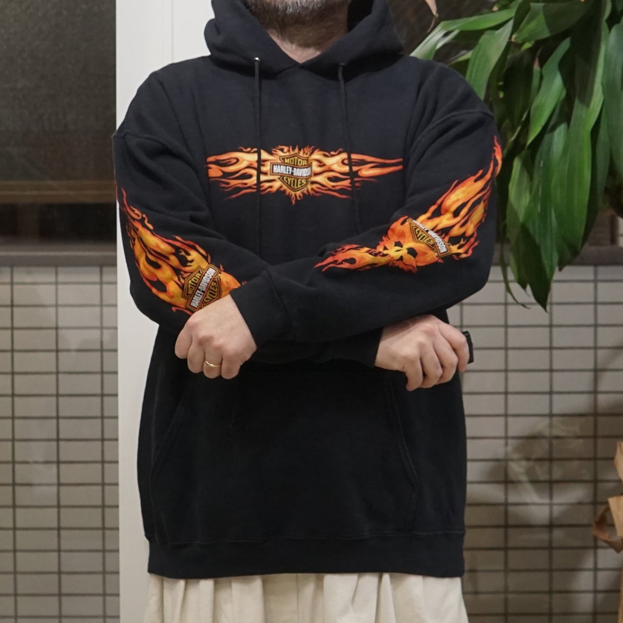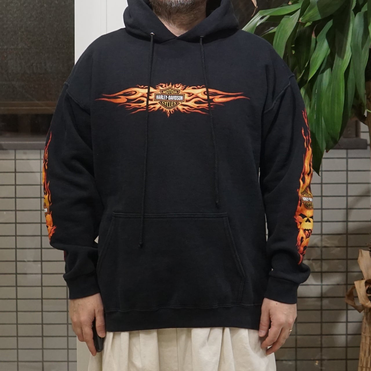 00's Vintage Harley Shirt Fire Flame Hoodie【L】