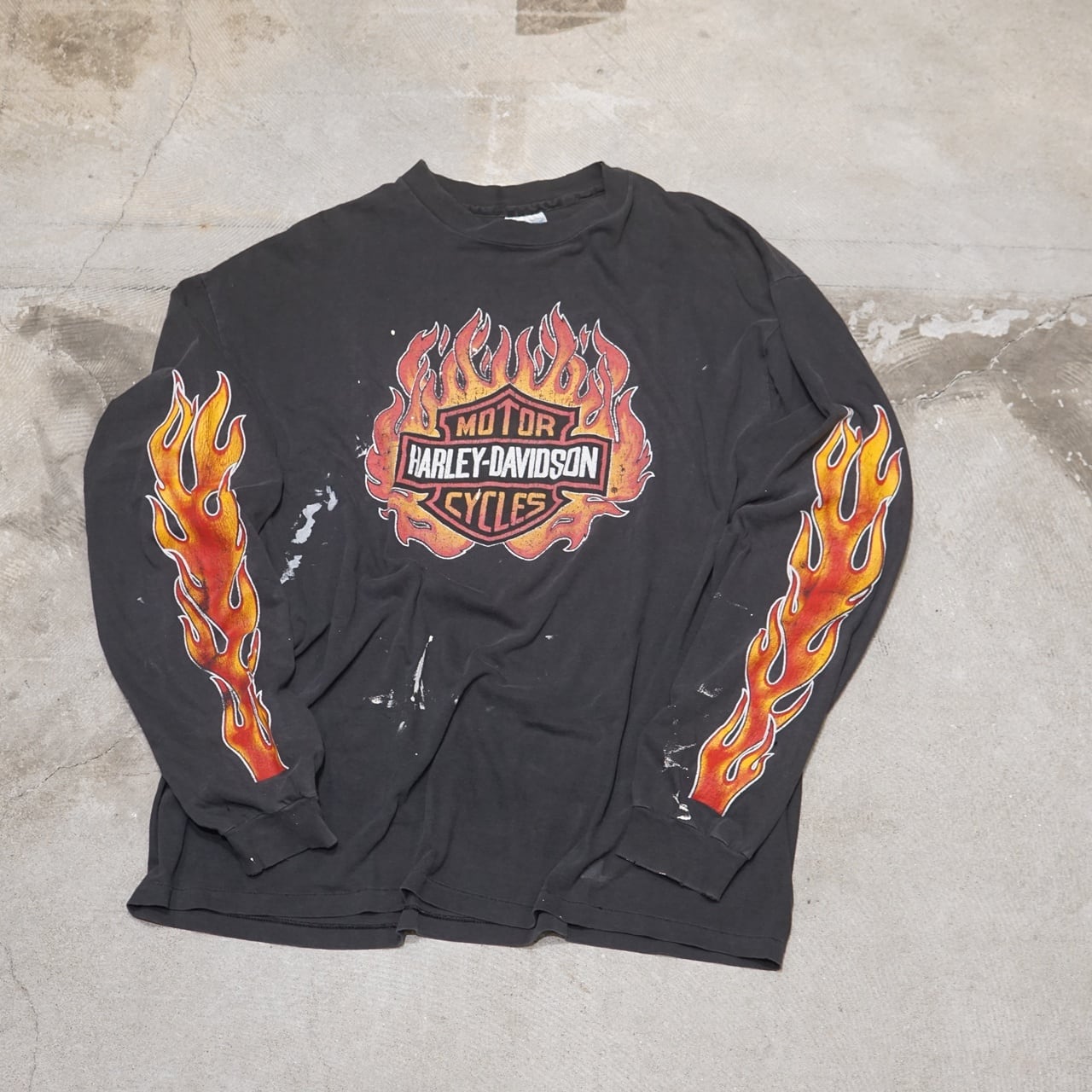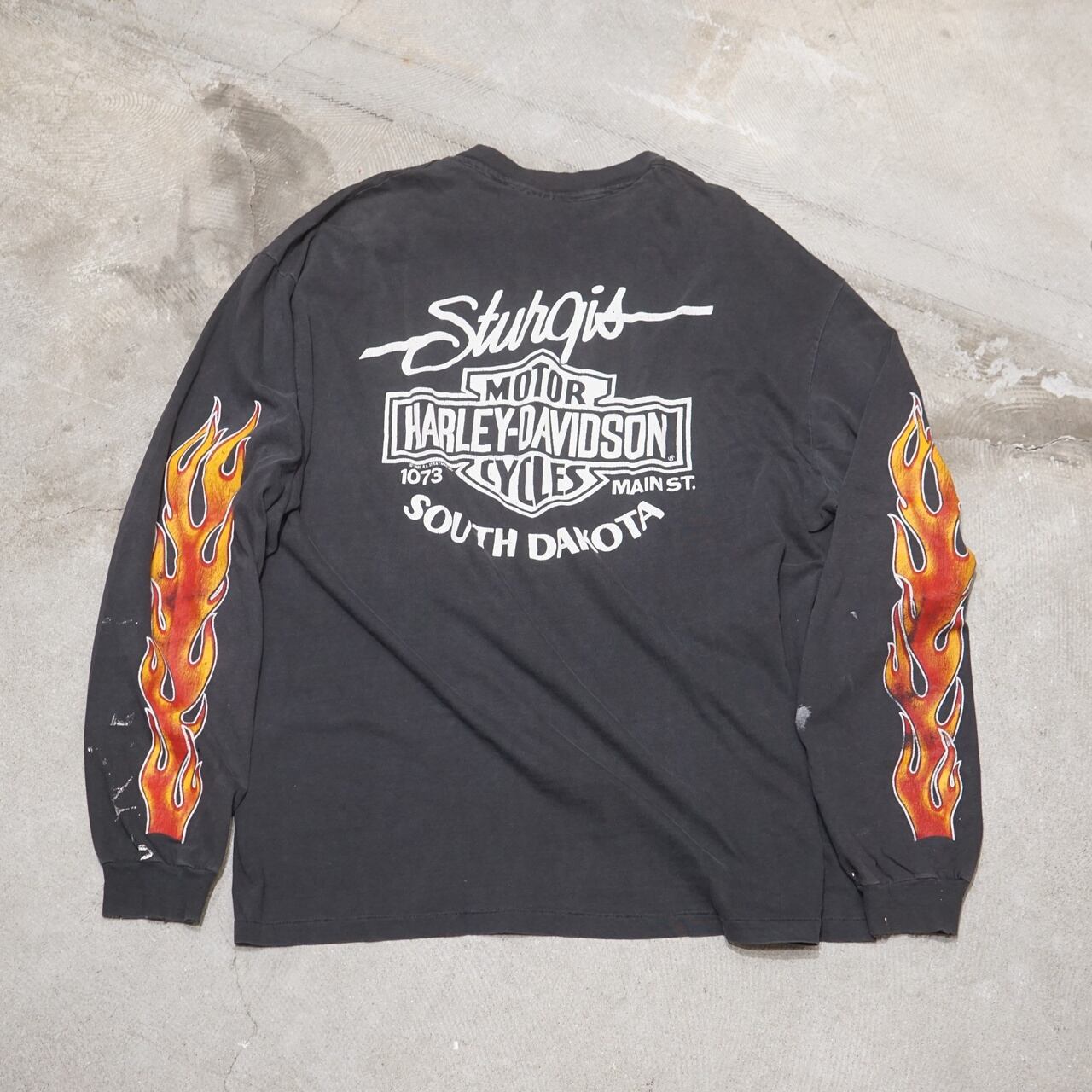 90's Vintage Harley Shirt Fire Flame L/S【XL】