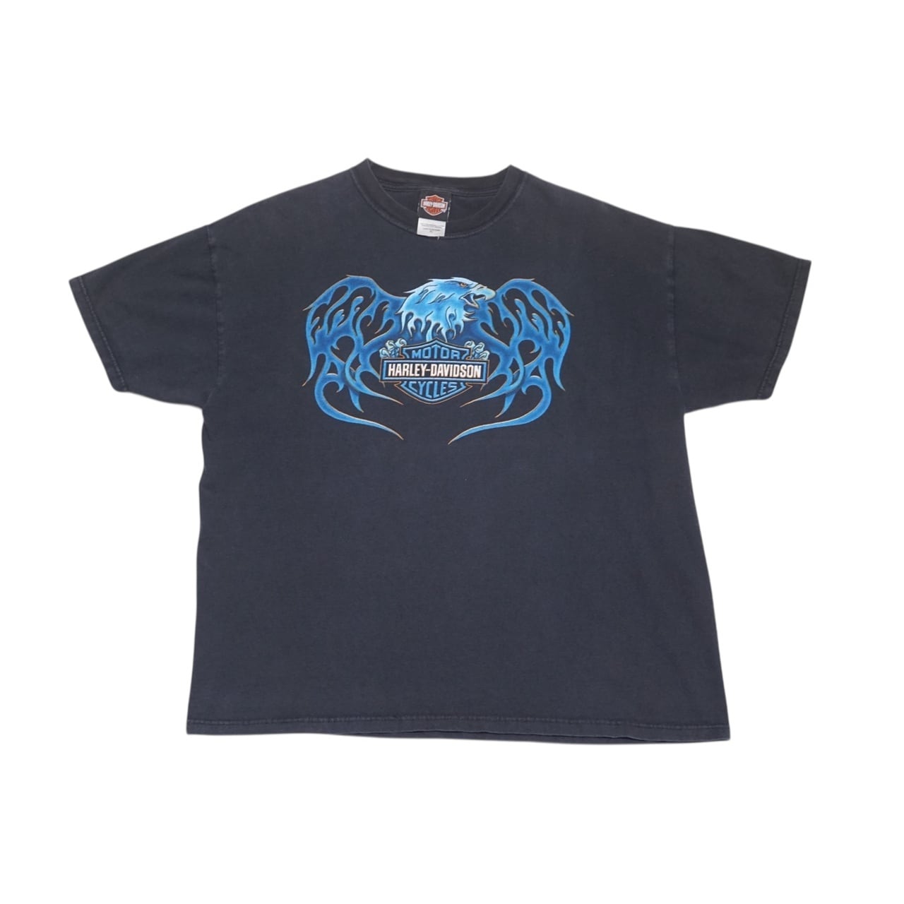 00's Vintage Harley Shirt Blue Eagle Flame S/S【XL】