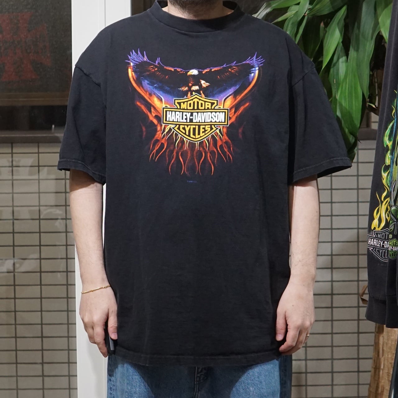 00's Vintage Harley Shirt Eagle Flame S/S【XXL】