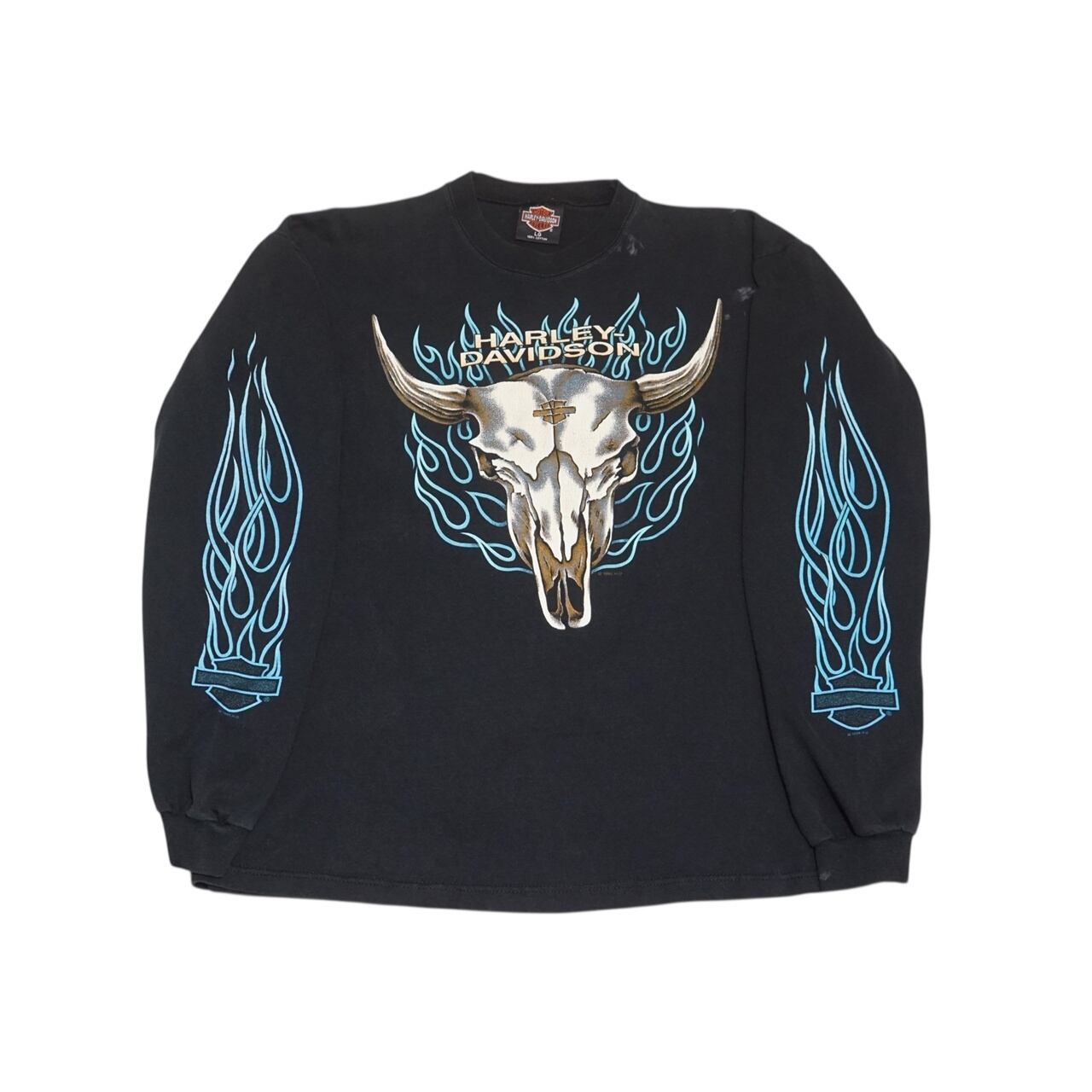 90's Vintage Harley Shirt Buffalo Bone Flame L/S【L】