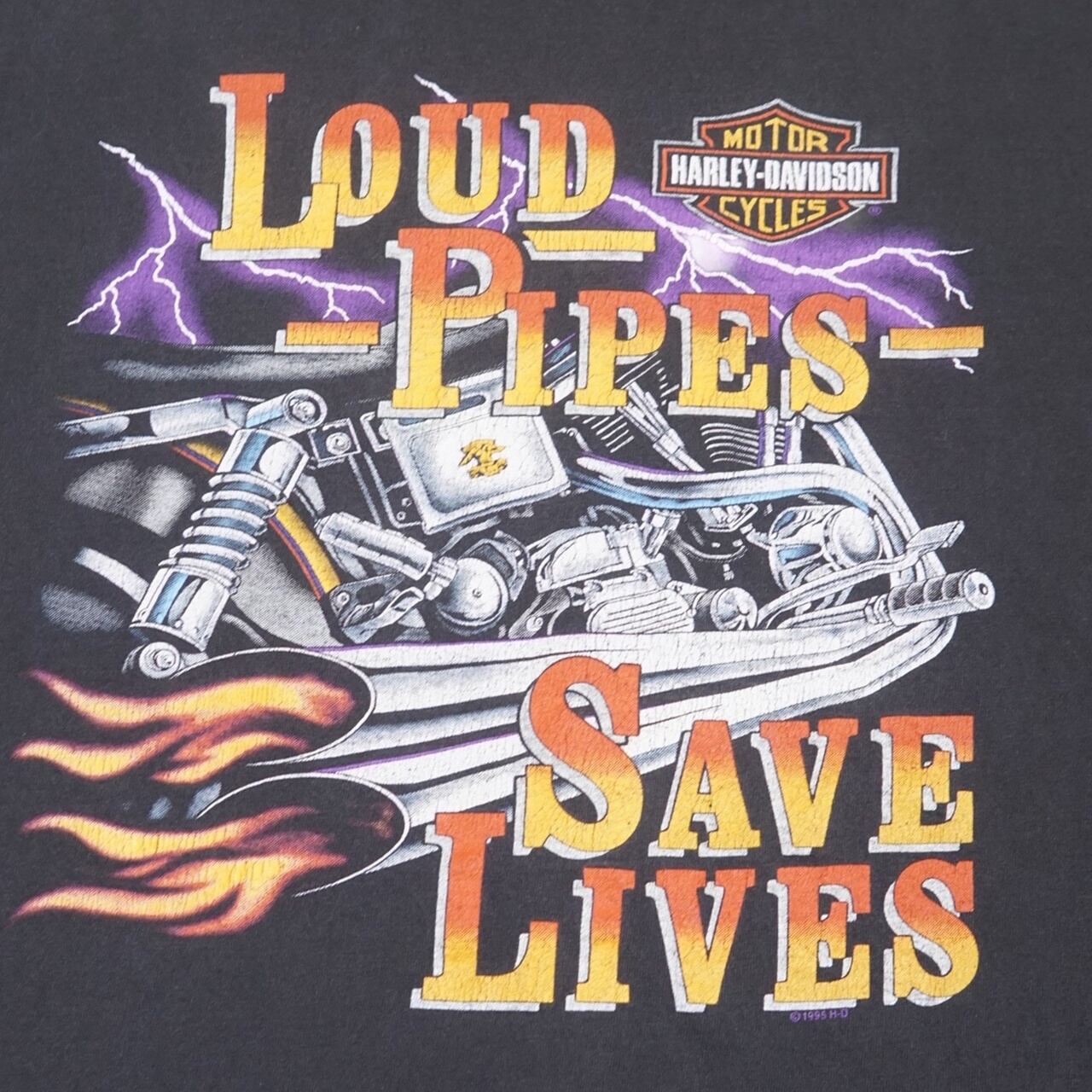 90's Vintage Harley Shirt Loud Pipes Save Lives S/S【XL】