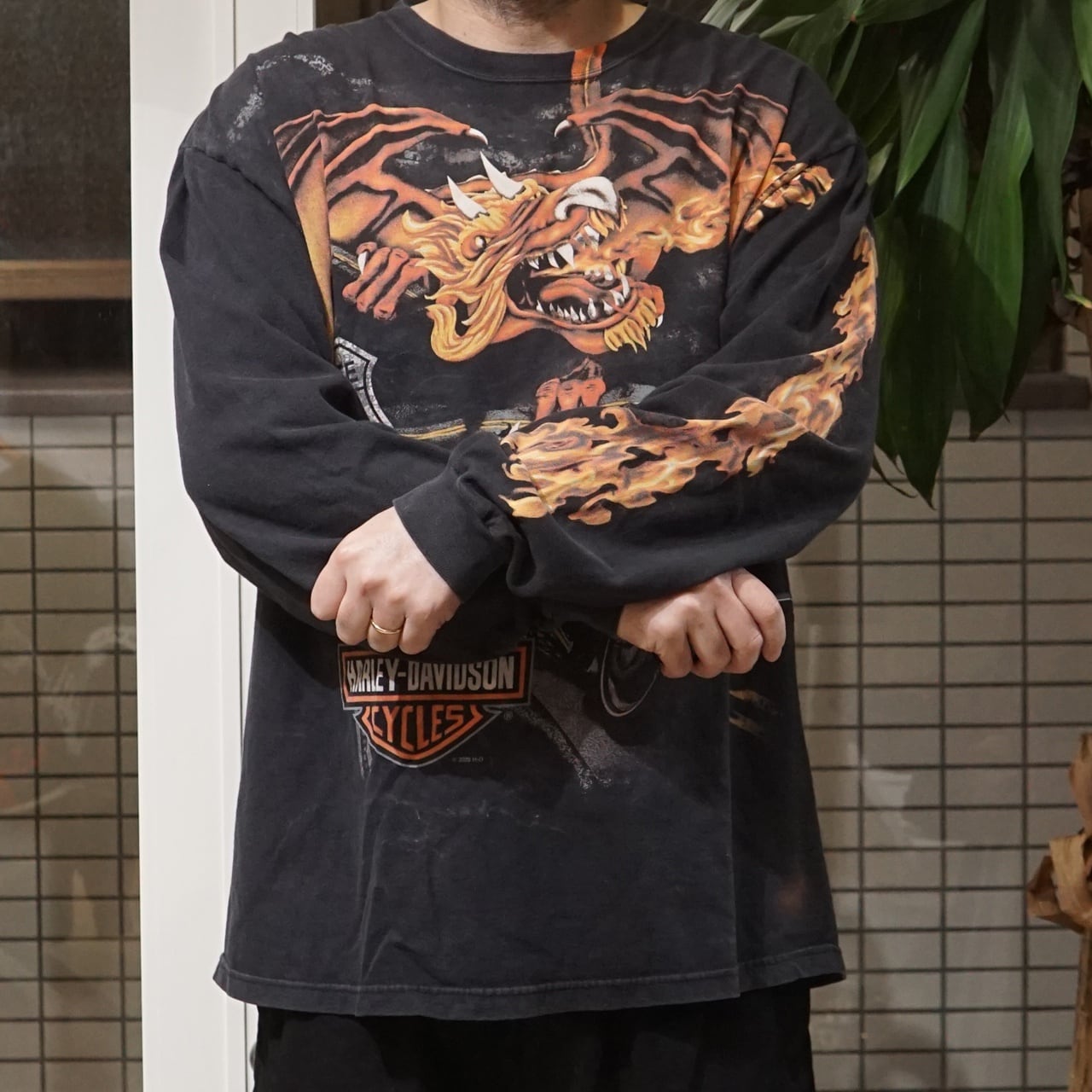00's Vintage Harley Shirt Dragon Flame Smoky Mountain L/S【XL】