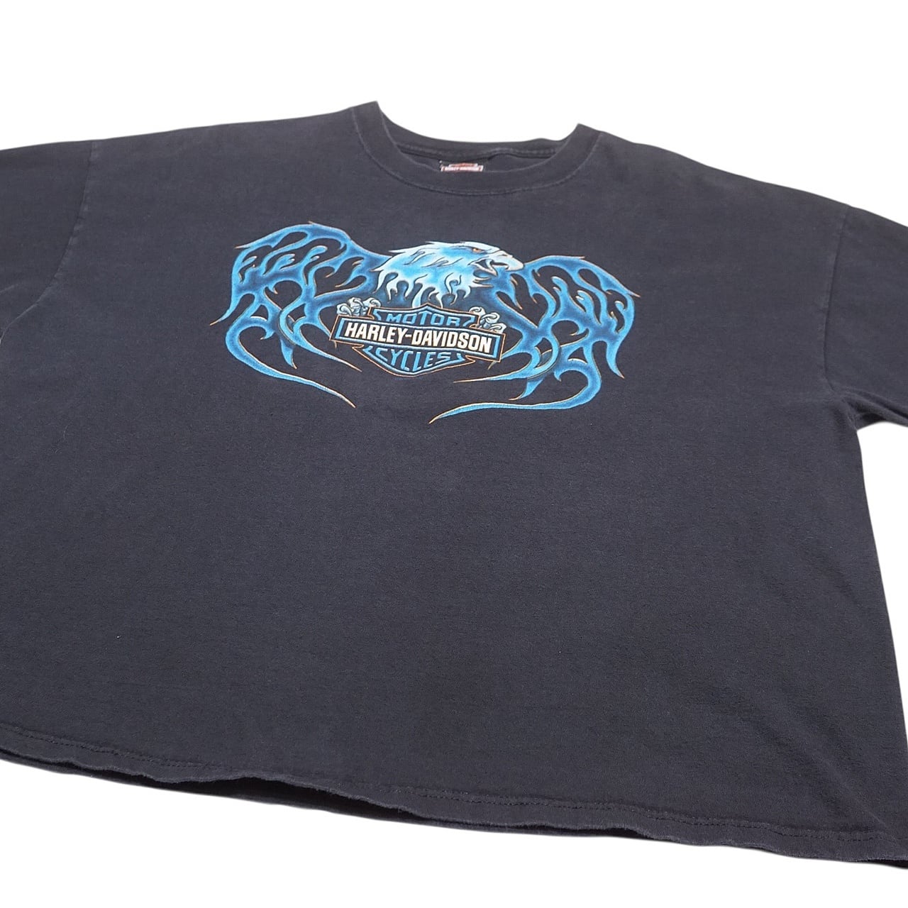 00's Vintage Harley Shirt Blue Eagle Flame S/S【XXL】