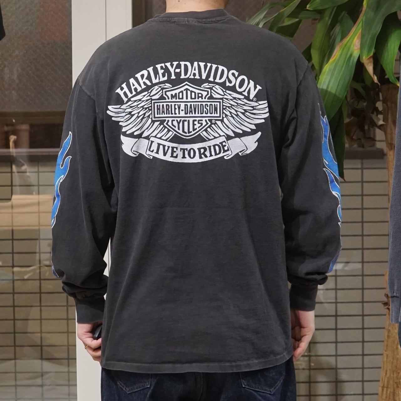 90's Vintage Harley Shirts Blue Flame L/S【XL】