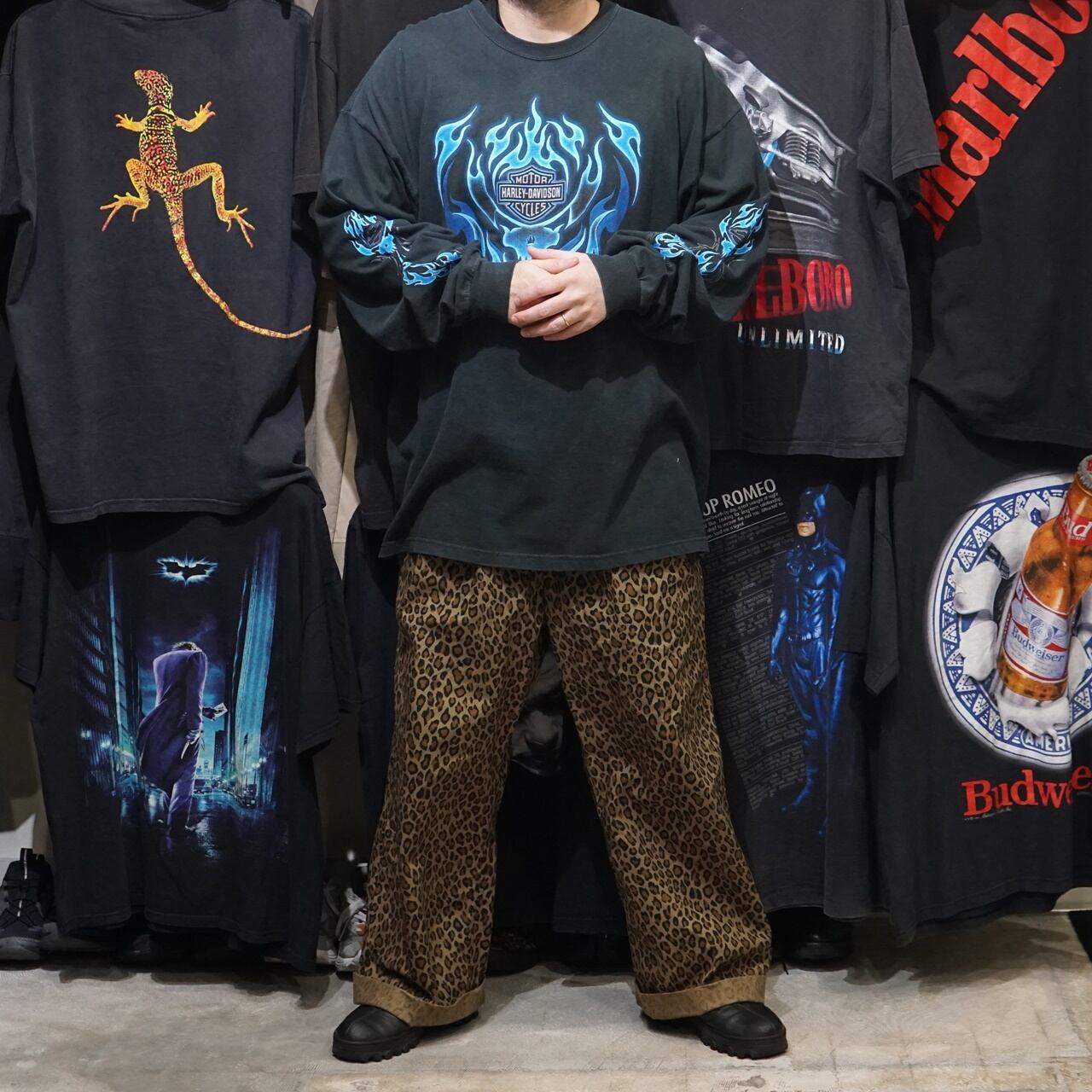 00's Vintage Harley Shirts Blue Flame L/S【XXL】