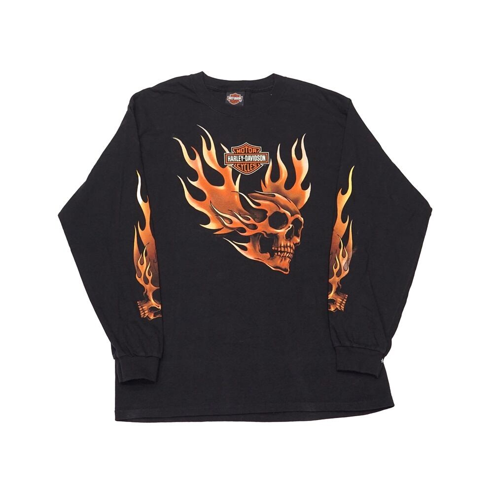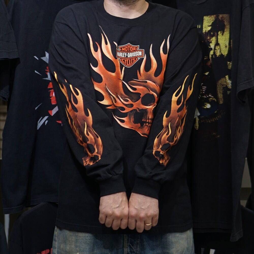 00's Vintage Harley Shirts Skull Flame L/S 【L】
