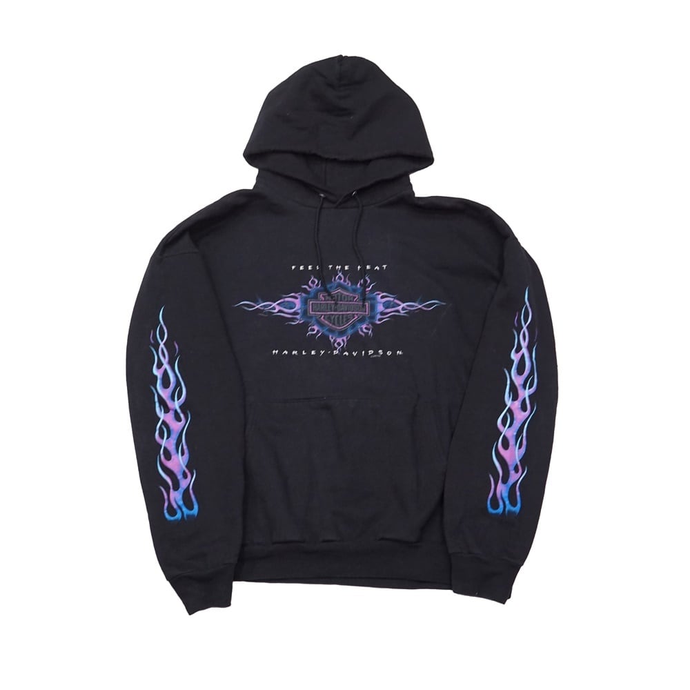 90's Vintage Harley Shirts Flame Hoodie 【XL】