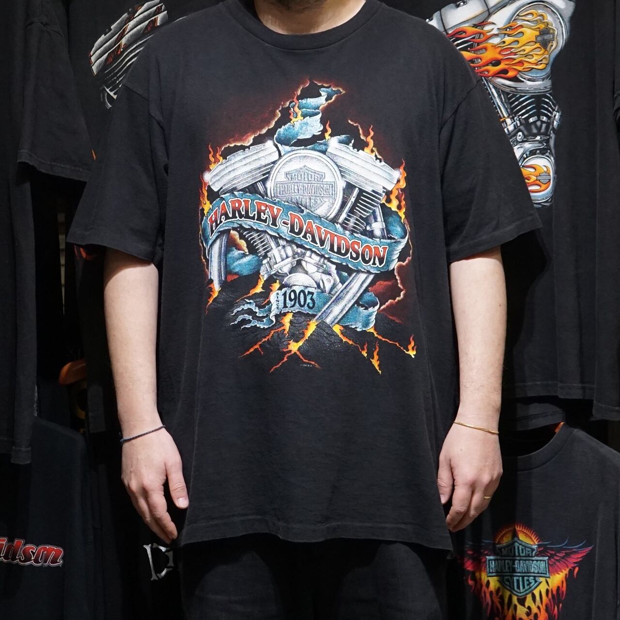 90's Vintage Harley Shirts Engine Flame S/S 【XL】