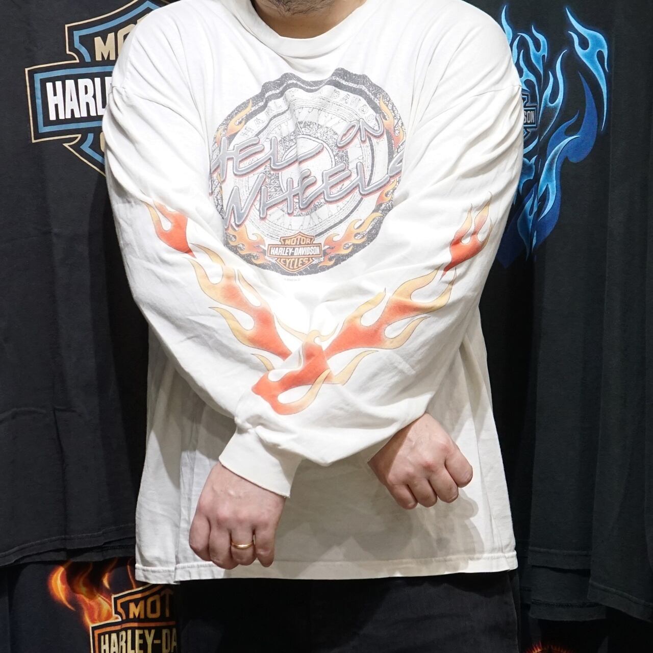 00's Vintage Harley Shirts Flame L/S White【XL】